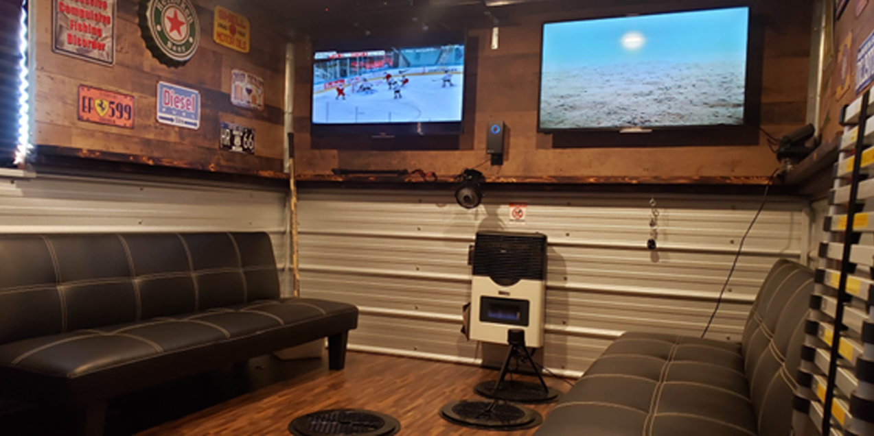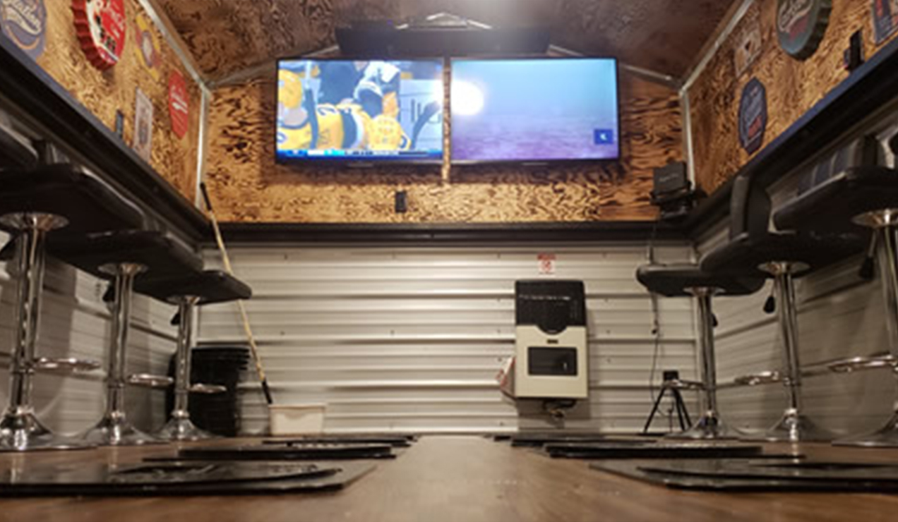 canmark flowdexWhether it’s a day use or an overnight rental, we have created a turn key ice fishing experience that enables anybody to get out and try it with ease. We set up on the great fishery at Wabamun Lake which is conveniently located on the Yellowhead Highway 45 minutes west of Edmonton Alberta. With our convenient location and turn key offerings, all you need to do is pack your food, clothing and bedding as everything else is taken care of for you. You will show up and our rep will have the shack cleaned, heated, ice fishing holes drilled, TV’s tuned in with the underwater camera and the satellite, fishing lines tied, BBQ setup and fuels full ready for your consumption. You will then go through a quick shack orientation and that’s it, you are ice fishing within half hour.